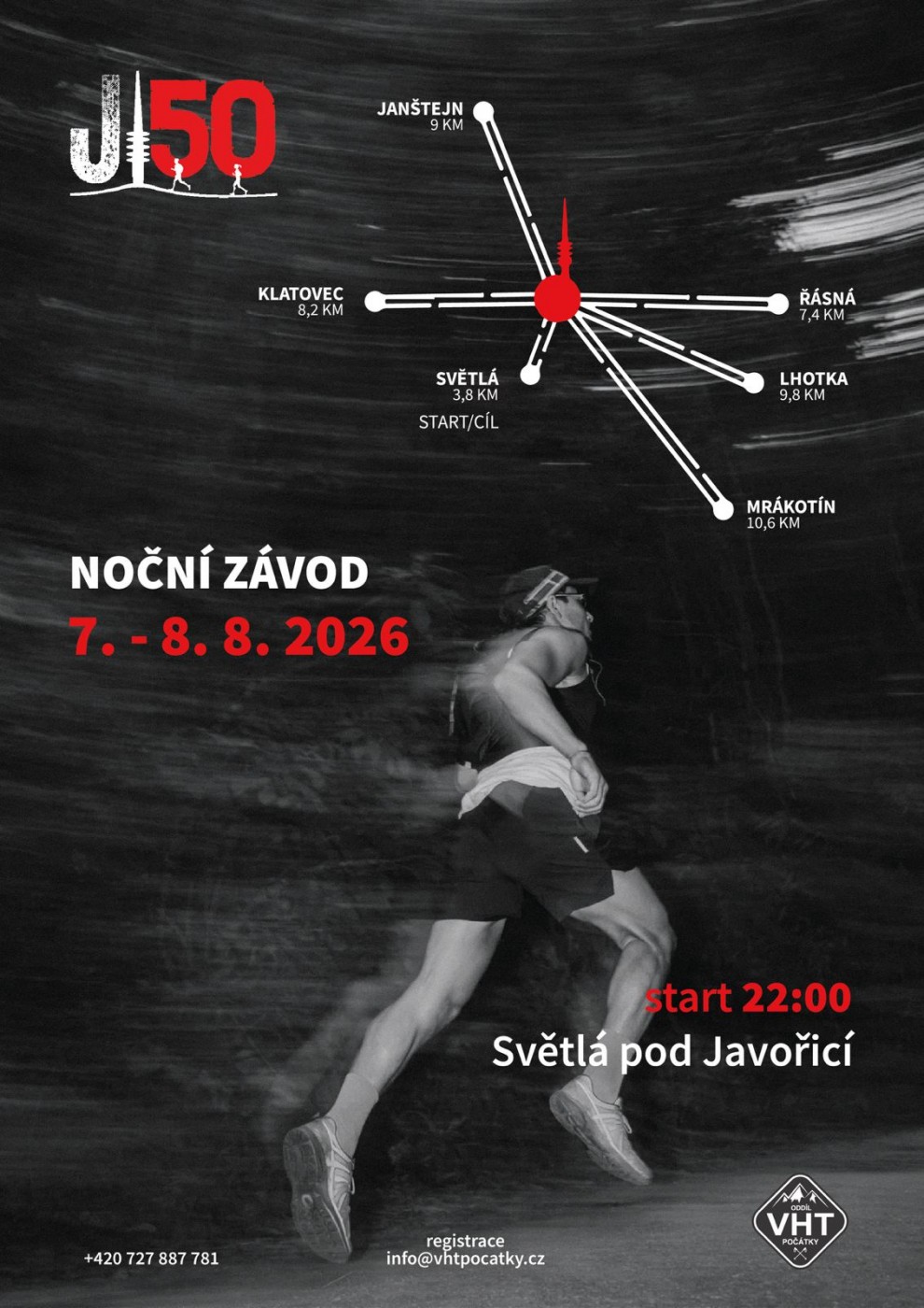 Javořická padesátka je už deset let srdcovou akcí našeho oddílu VHT Počátky. Noční režim závodu se v posledních letech ukázal jako jednoznačně nejlepší varianta – atmosféra tmy, světel čelovek a tichých lesů dodává celé výzvě jedinečnou energii. Proto i letos poběžíme znovu v noci, přesně tak, jak máme nejraději.